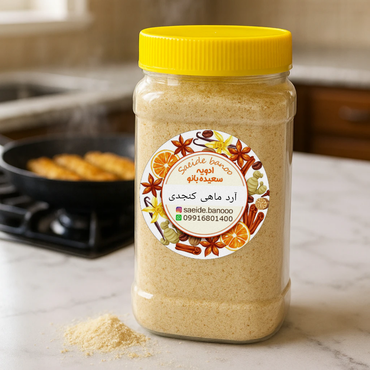 آرد ماهی مخصوص سرخکردن با ترکیب متعادل ادویهها و کنجد ایجاد بافت ترد و طلایی و طعمی حرفهای برای انواع ماهی. و متعادل کردن طبع ماهی و از بین بردن سردی آن.